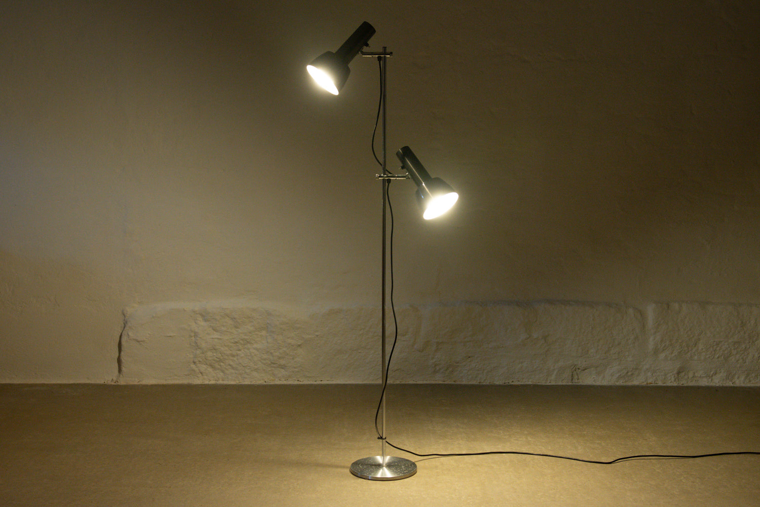 1960s twin-headed metallic grey floor lamp