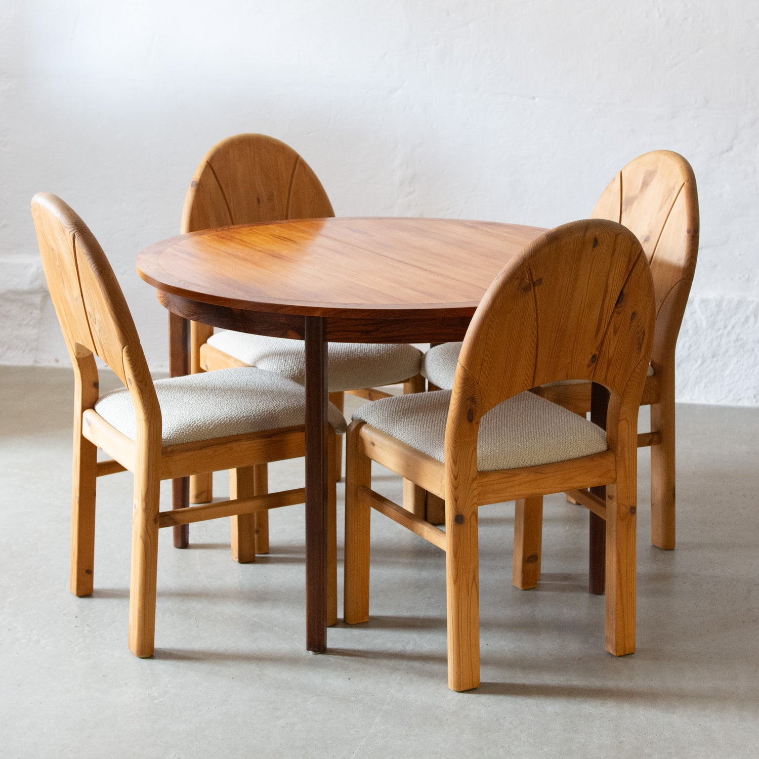 Newly reupholstered: Set of four 1990s pine dining chairs